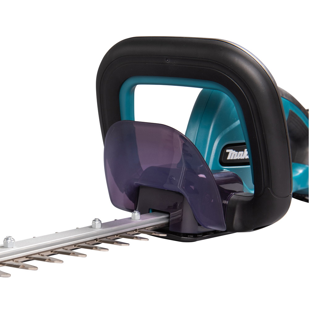 - Lahki akumulatorski obrezovalnik žive meje DUH507 tehta 3,0 kg, vključno z baterijo BL1860B 6,0 Ah. Z nameščeno baterijo je optimalno uravnotežen, kar preprečuje utrujenost tudi med dolgotrajno uporabo. Optimizirana oblika rezila omogoča rezanje vej debeline do 15,0 mm. Zahvaljujoč izboljšani zasnovi je varnostno stikalo v zgornjem ročaju enostavno prijeti v katerem koli položaju brez večjega napora.